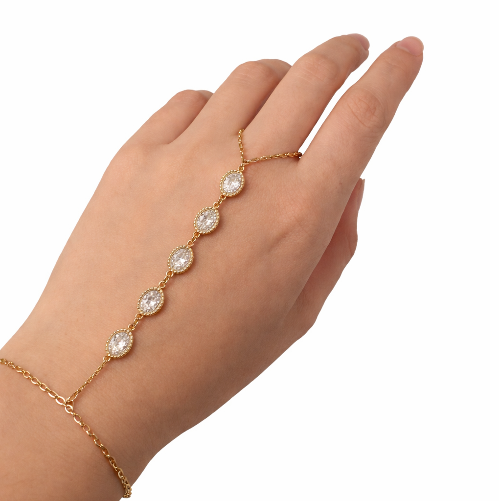 Simple au motif a strass, cette chaîne de main ornée de strass scintillants.